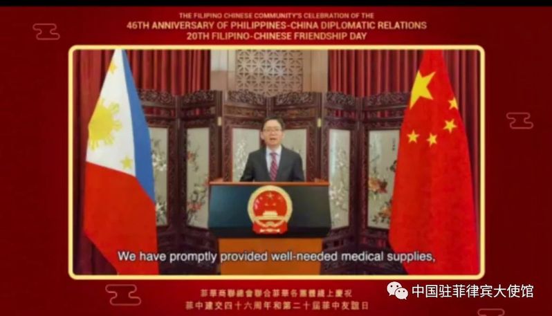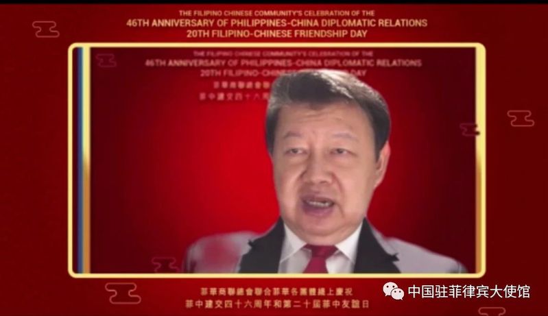 6月9日,檀勍生临时代办出席“中菲建交46周年暨第20个中菲友谊日”线上庆祝会并发表致辞。菲总统杜特尔特、前总统阿罗约、参议长索托、众议长维拉斯科、参议员克里斯托弗·吴等视频致辞。参议员维拉、张侨伟、艾美、外交部长洛钦、国防部长洛伦扎纳、交通部长杜伽德、贸工部长洛佩兹、总统发言人洛克、最高法院法官蔡友忠等政要以及菲华商联总会理事长林育庆等侨领和各界友人、在菲华侨华人等400余人在线共襄盛典。杜特尔特总统在致辞中表示,菲中两国人民之间的友谊深厚且久远,可追溯至几个世纪之前。感谢菲华社会为促进菲中经济、文化和人文交流作出的贡献。在我们即将迈向建交50年之际,合作共赢将促进两国和平、进步和繁荣的伙伴关系更上一层楼。