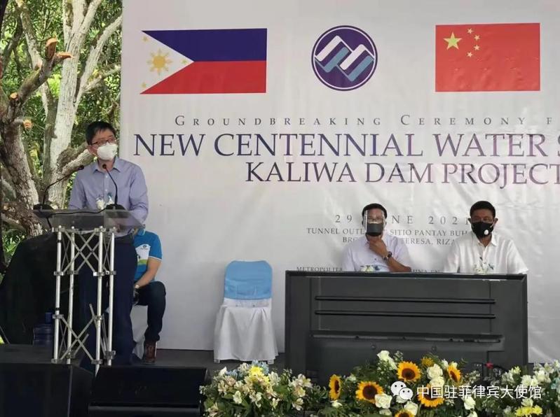 2021年6月29日,中国驻菲律宾大使馆临时代办檀勍生应邀出席卡利瓦大坝项目动土仪式并致辞。菲“大建特建”旗舰项目总统顾问迪松视频致辞。菲公造部副部长亚布、马尼拉水务局董事会主席维拉斯科、黎刹省特蕾莎市市长帕利诺、黎刹省莫龙市市长德莱昂等出席活动。